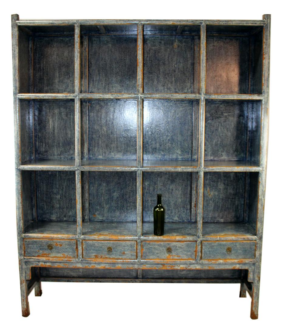 Chinese Ming style painted blue open bookcase