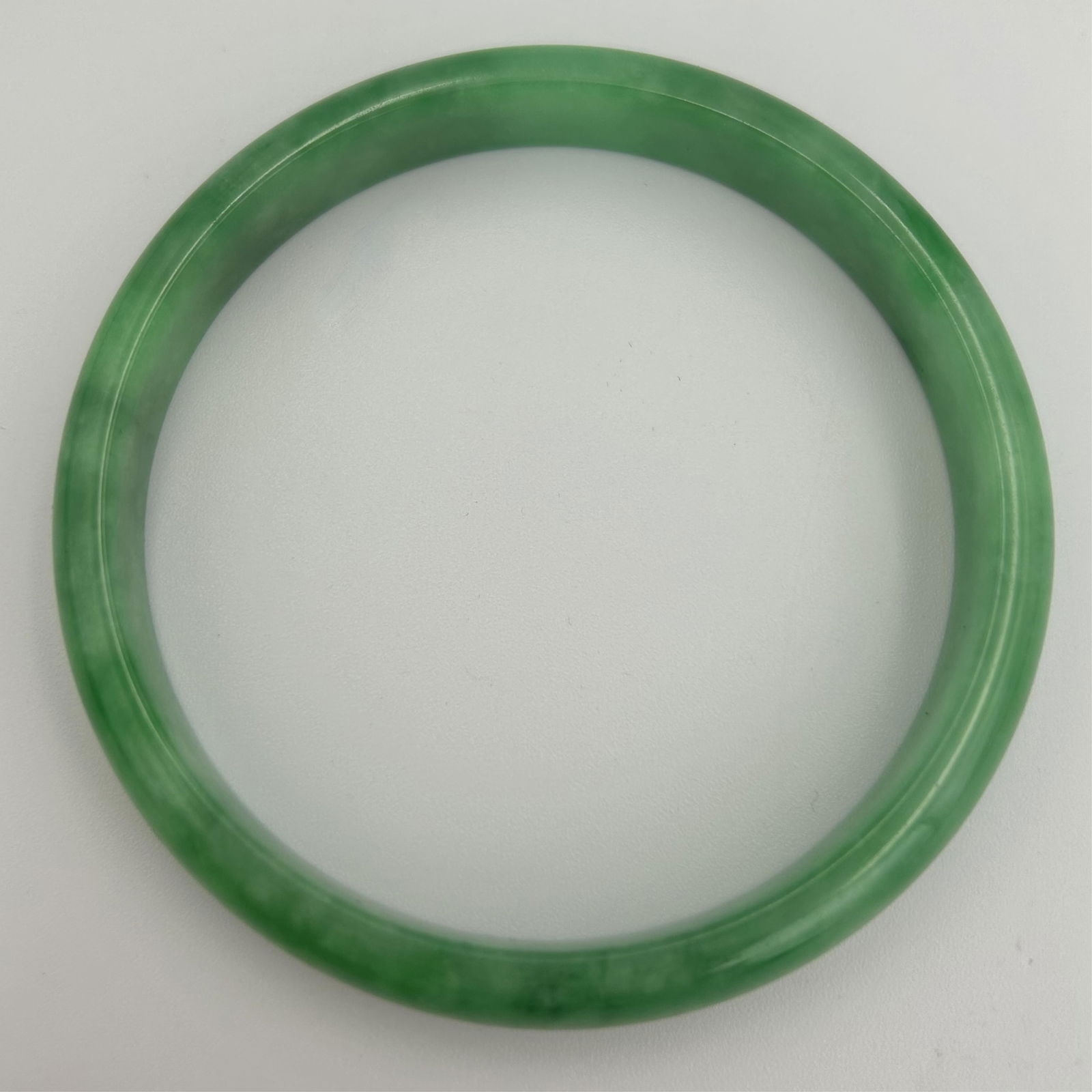 CHINESE MOTTLED GREEN JADE BANGLE Diameter 3".