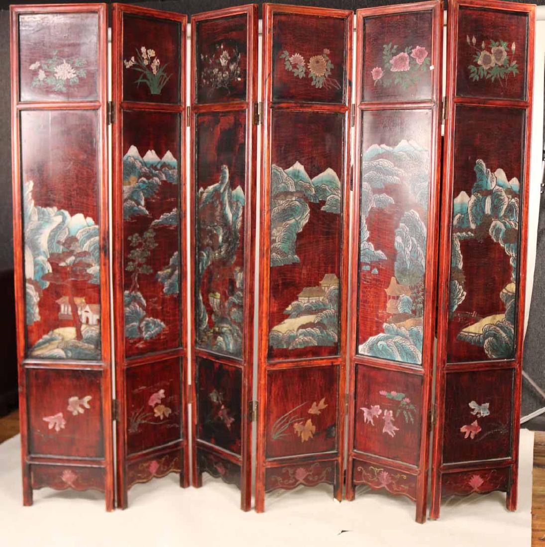 Chinese Painted Hardwood Six Panel Screen