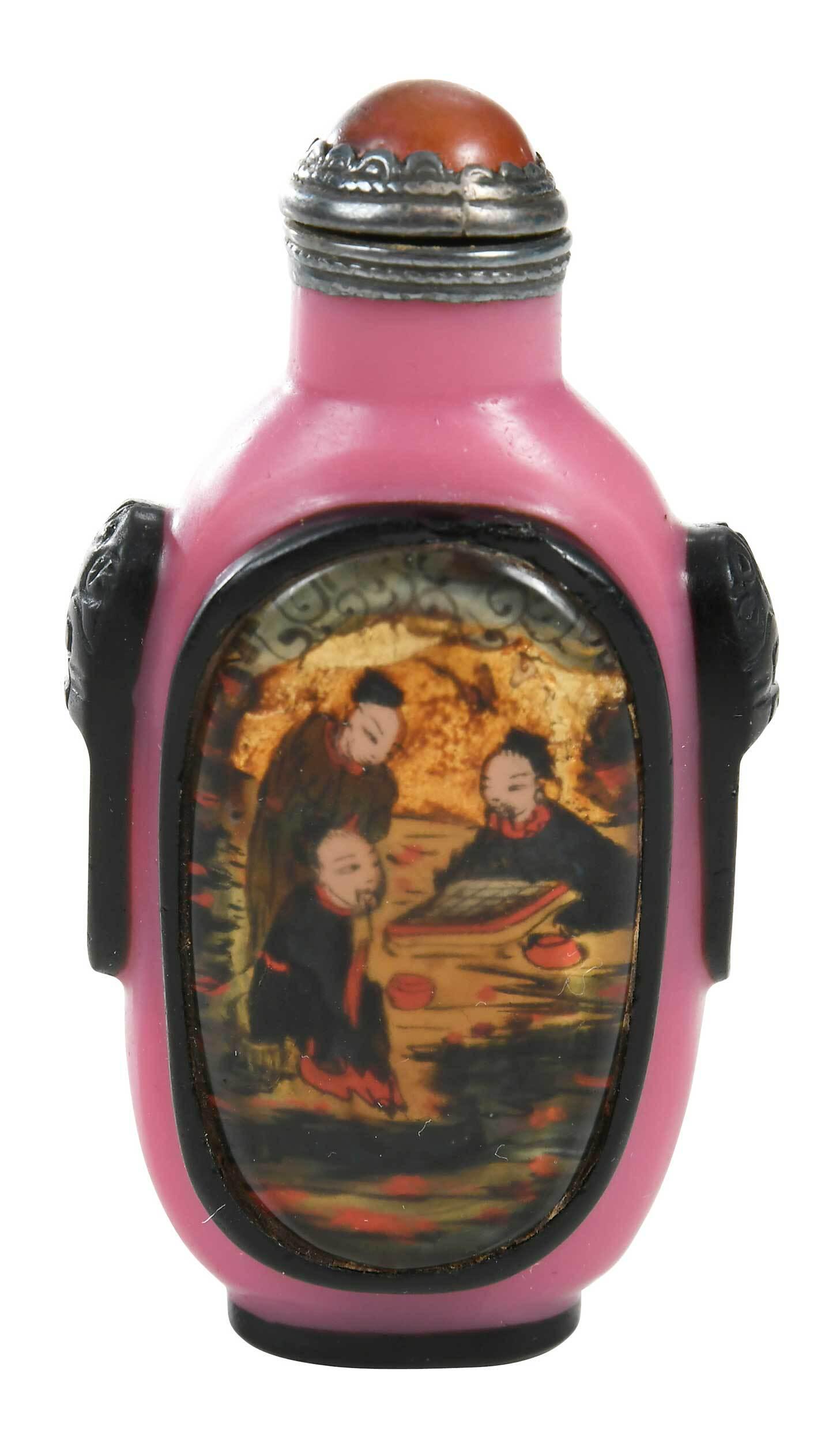 Chinese Pink Glass Reverse Painted Snuff Bottle