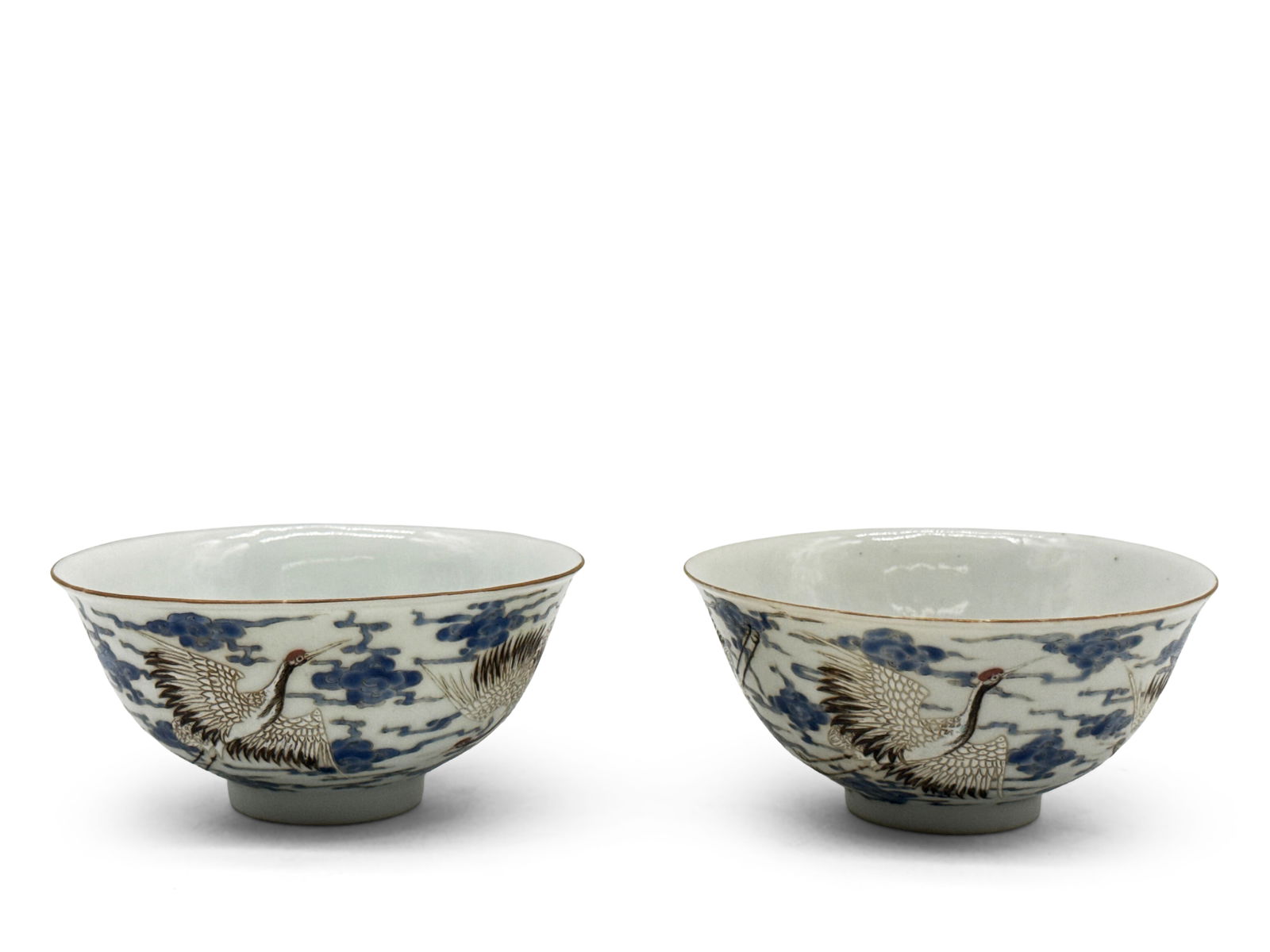Chinese Porcelain Eggshell Cranes Bowls