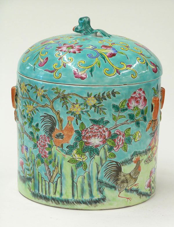 Chinese Porcelain Jar, Rooster/Coxcombs