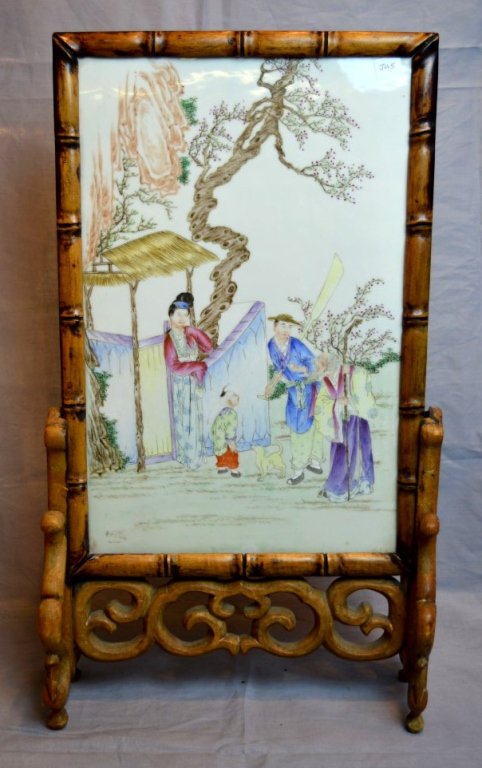 Chinese Porcelain Table Screen on Stand
