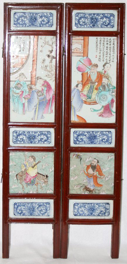 CHINESE PORCELAIN TWO-PANEL SCREEN, H 29"