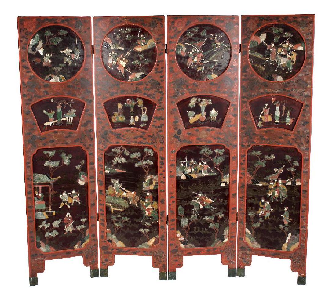 Chinese 12-Panel Lacquered Floor Screen with Birds7 days LeftA Chinese Embellished Lacquer Four-Panel Screen, Qianlong Period, Qing DynastyMar 14, 2026CHINESE BLACK LACQUER 4 PANEL SCREEN6 days LeftChinese Lacquer Four Panel ScreenMar 11, 202619th Century Chinese Carved Four Panel Screen2 days LeftAntique Chinese Carved, Ebonized & Hand Painted Four-Panel Dressing Screen c19306 days LeftA Chinese four panel lacquered wood screen2 days LeftA Chinese six-panel hardstone-inlaid tixi screen, Republic periodMar 22, 2026A Chinese Kesi Textile Inset Four-Panel Floor Screen, 19th CenturyMar 14, 2026Chinese 6-Panel Lacquered Floor Screen.7 days LeftA Chinese four-panel black lacquer polychrome screens, 17th centuryMar 21, 2026A Chinese Black Lacquer Four-Panel Folding Floor ScreenMar 14, 2026Six-Panel Chinese Lacquered Screen with Inlaid Horse Motif Early 20th CenturyMar 10, 2026A Chinese carved gilt-lacquered wooden three-panel folding screen with a narrative design, 19/20thMar 18, 2026Zitan Wood Four-Panel Screen Inlaid with Jade (Flowers, Birds, and Figures)713 Lots AwayA Chinese four-panel black lacquer hardstone-inlaid screen, early 19th centuryMar 22, 2026