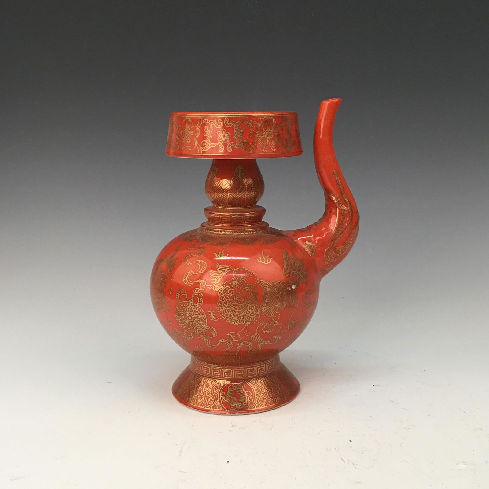 Chinese Red Glazed Pitcher, Qianlong Mark