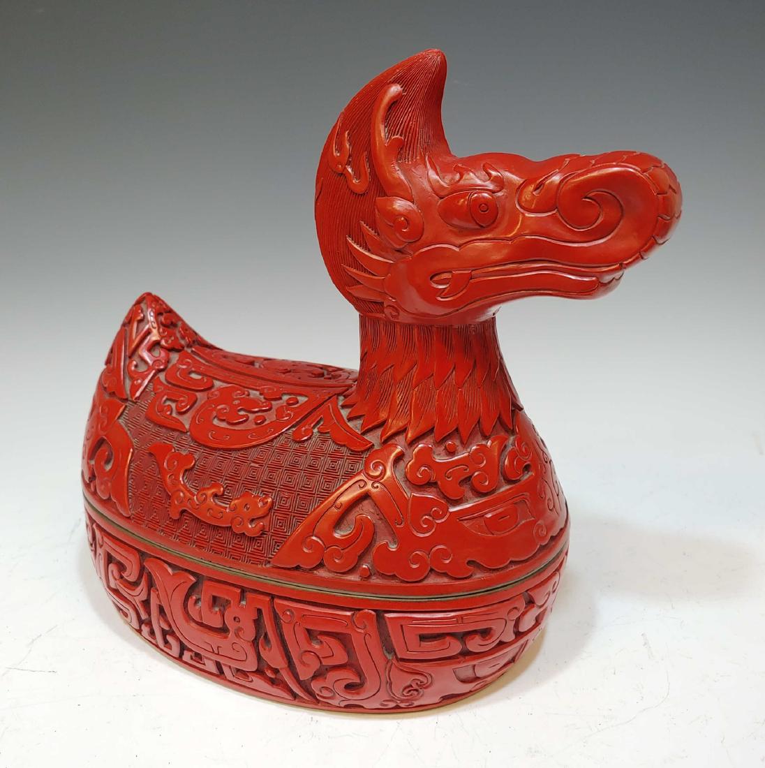 Chinese Red Lacquer Duck Form Box
