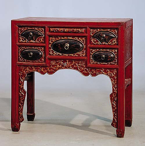 Chinese red lacquer lowboy rectangular t