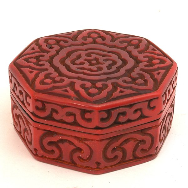 Chinese Red Lacquer Octagonal Box/Cover Late 19th