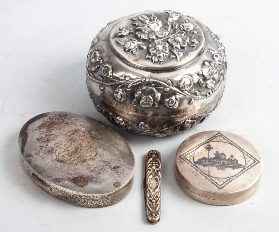 GROUP LOT OF SILVER ITEMSFeb 25, 2026LOT OF SILVERPLATE, MIRROR AND MOREFeb 26, 2026(4) CONTINENTAL SILVER MINIATURE FURNITURE & VIOLIN SHAPED BOXES5 days LeftSilver Items, RussiaFeb 25, 2026Continental Silver-Plated Jewelry BoxFeb 25, 20265 Miniature Silver BoxesMar 14, 20266 Miniature Silver Boxes & VinaigretteMar 14, 20267 Metal BoxesMar 14, 20265 Miniature Silver BoxesMar 14, 202616 Sterling and Silver Plate CasesFeb 25, 2026Large Antique Chinese Silver & Gilt Covered Box with Insert, Qing Dynasty3 hrs LeftFour Baroque style sterling silver vanity boxesMar 03, 2026Canton circa 1860 marked Khe Cheong A mid-19th century Chinese silver snuff box16 hrs LeftCollection of Silver Diminutive Covered Boxes, 5Feb 26, 2026A continental silver box probably Hanau, late 19th / early 20th century, unattributed makerFine 3 Piece English Dutch Sterling Silver Box Collection 1900Feb 28, 2026