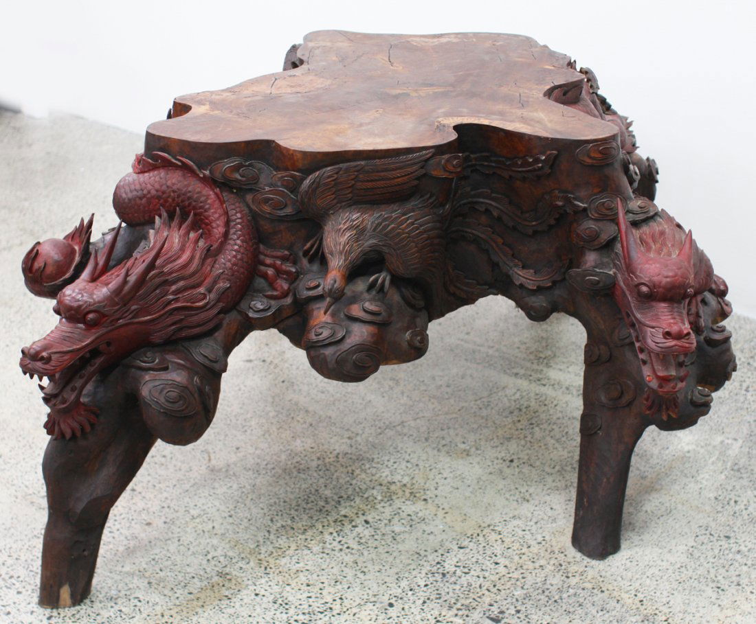 Superb Vintage Chenxiang Wood Carved Pine Tree & Figure StatueChinese Caved Wood Dragon Table 20th Cent., H 29" Dia. 42.75"Feb 19, 2026Antique Chinese carved hardwood Hongmu altar table with rounded drawers and reticulated dragon motifFeb 21, 2026Huanghuali Wood Table Screen with Dragon MotifFeb 28, 2026Vintage Chinese ornately carved wood / rosewood altar table console with bamboo dragon motif, earlyFeb 21, 2026Boxwood openwork carved screen ornament depicting a dragon and phoenix symbolizing auspiciousnessFeb 21, 2026Carved Wood Chinese Style Dragon Sculpture1 day LeftTANG DYNASTY, WOODEN DRAGONFeb 27, 2026Chinese carved hardwood kang low tableFeb 18, 202618th/19th century Chinese carved wood stand. Dragon carved panels and feet. 15.5 x 9.25 x 5.25in.Mar 01, 2026Antique Chinese Polychrome & Carved Wood PanelFeb 22, 2026Chinese Hardwood & Marble Pedestal Table, 19th C.Apr 14, 2026A large South East Asian carved hardwood dragon group 80cm1 day LeftAn antique Anglo-Indian Burmese richly carved exotic wood round tableFeb 24, 2026A ZITAN WOOD CARVING CHI-DRAGON PATTERN ORNAMENTFeb 26, 2026Chinese Carved Hongmu Thorne Chair, Ca. 1900, H 38.5" W 24" Depth 19"Feb 19, 2026