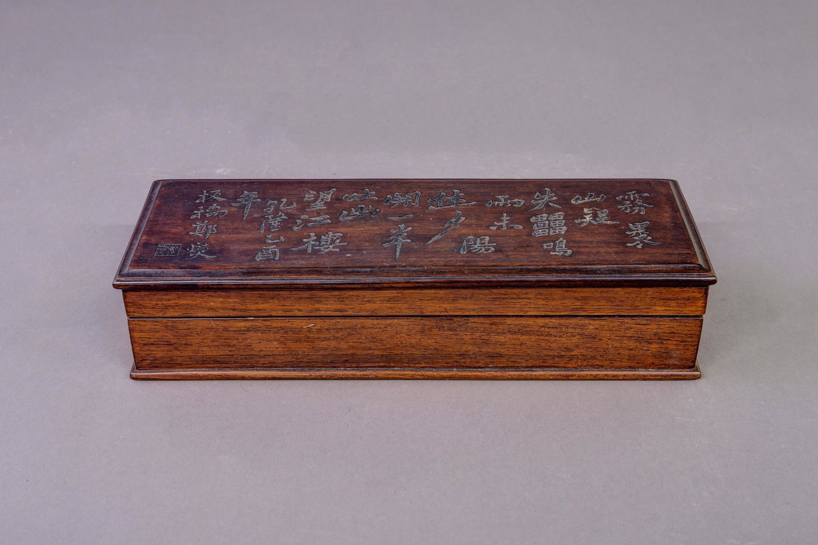 A mahogany poetry cover box from the Qing Dynasty