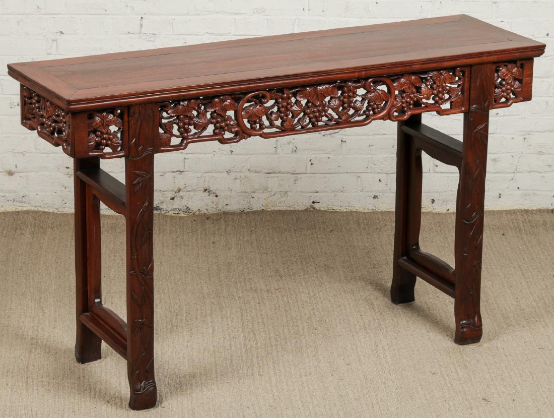 Chinese Rosewood Table with Carved Grape Pattern