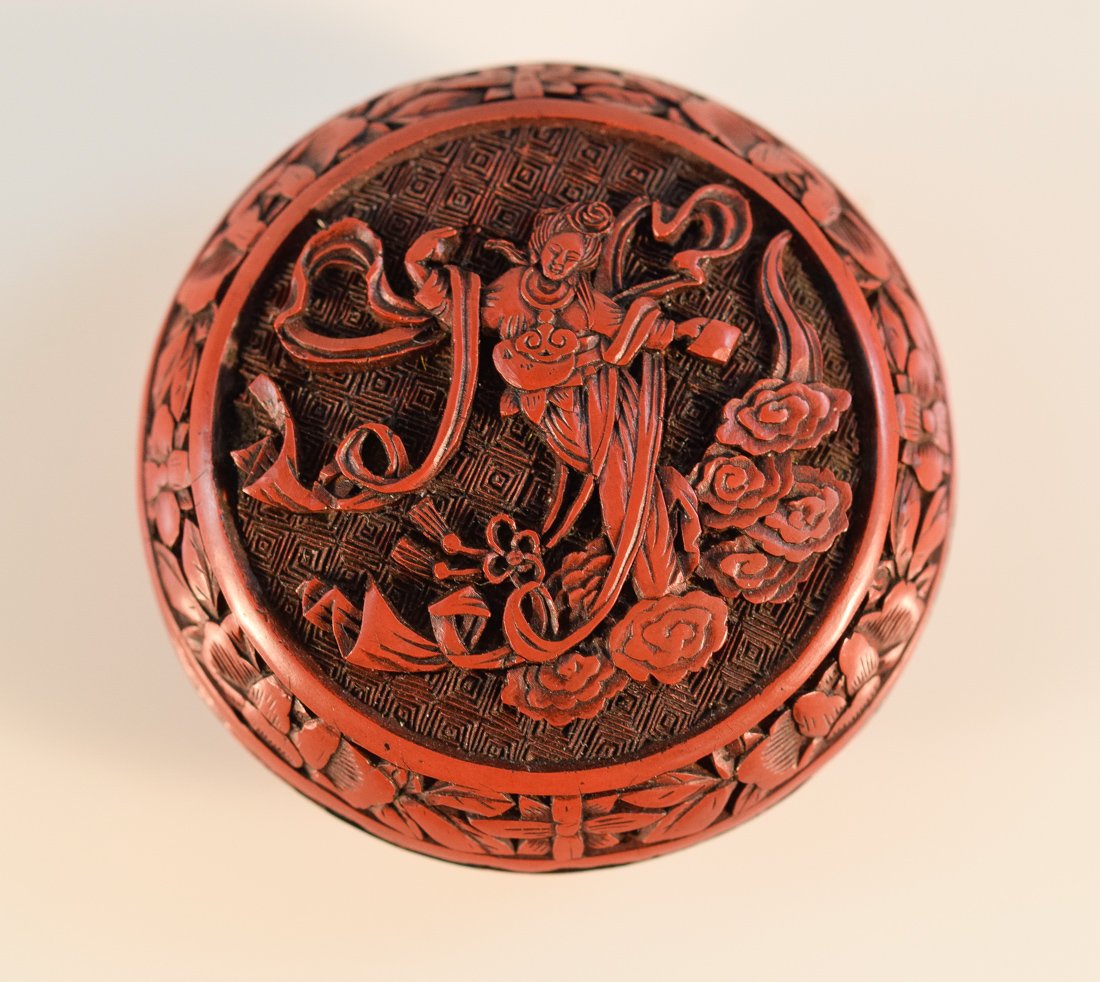 Chinese Round Cinnebar Seal Paste Box