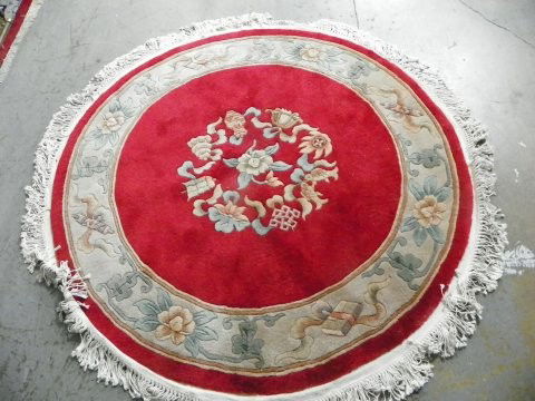 An old round Chinese rugAn old round Chinese rug measuring 6 feet in diameter. We offer in house shipping of this lot to any USA destination for a flat fee of $ 55 dollars.See Sold Price