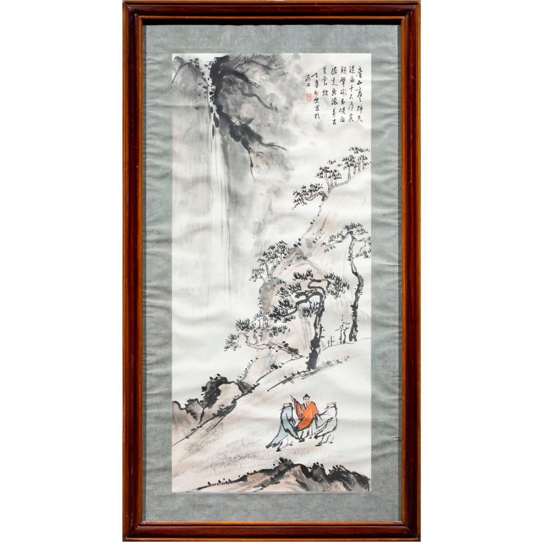 Chinese School - Three Scholars Viewing Waterfall