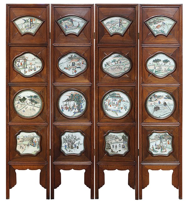 Chinese Screen with Porcelain Plaques