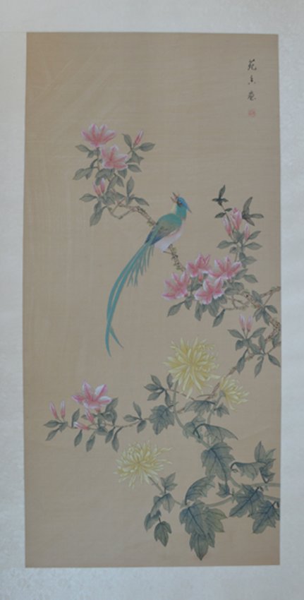 Chinese Scroll, Blue Bird and Flowers