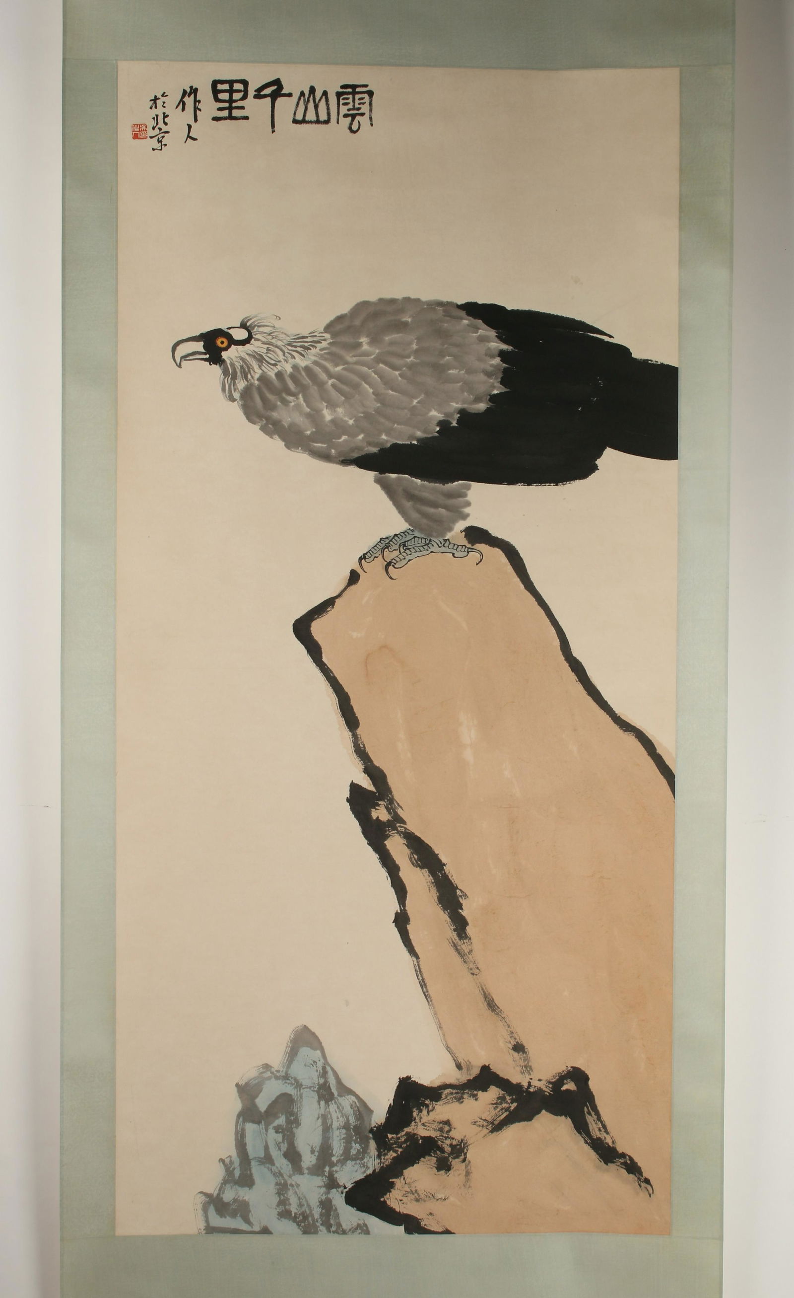 CHINESE SCROLL OF LARGE PERCHED EAGLE