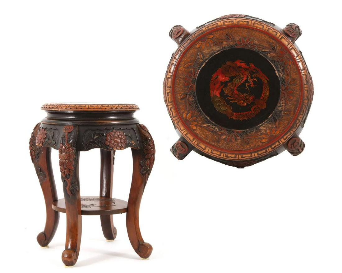 Three Piece Chinese Furniture Lot5 days Left(lot of 4) Chinese nested tables with jade and coral tops5 days LeftTavolino in legno duro con piano in marmo, CinaMar 03, 2026Two Chinese Hardwood Side TablesFeb 24, 2026A Chinese Hardwood 'Marble' Inset Ruyi-Head Circular Table6 days LeftJapanese traditional round table, Chabudai Japanese Table5 days LeftChinese Famille Rose 'Dragon' Jardiniere6 days LeftTwo Chinese Plant StandsFeb 27, 2026A Pair of Redwood Small Tables with Openwork CarvingsMar 08, 2026Qing Daoguang Inspired Famille Rose Eight Treasures Floral Appreciation PlateMar 11, 2026A wooden lacquer made in the Kangxi period of the Qing Dynasty with gold dragon pattern flower tableFeb 27, 2026A PAIR OF CHINESE EXPORT FAMILLE ROSE OVAL BASINS OR WINE CISTERNS, QIANLONG (1736-1795)Mar 03, 2026A PAIR OF CHINESE EXPORT PORCELAIN FAMILLE ROSE BOUGH POTS AND COVERS QIANLONG PERIOD, CIRCA 17852 days LeftA pair of Chinese hardwood square stands5 days Left3 Chinese Hardwood Side TablesFeb 24, 2026A rosewood and boxwood inlaid carved table screenMar 08, 2026