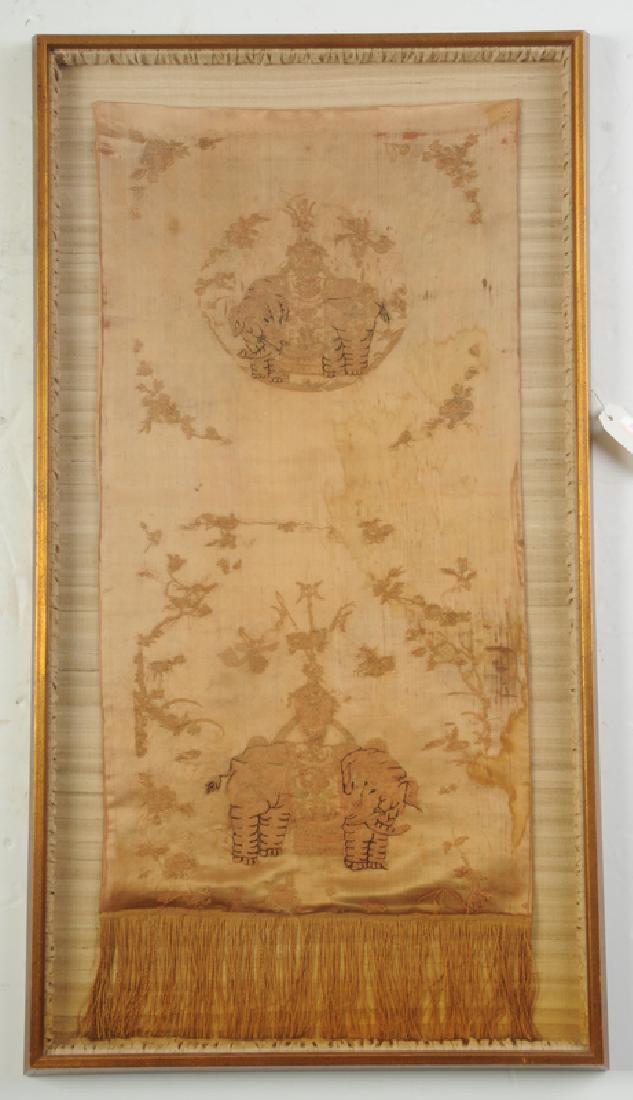 Chinese Silk Embroidered Panel with Elephants