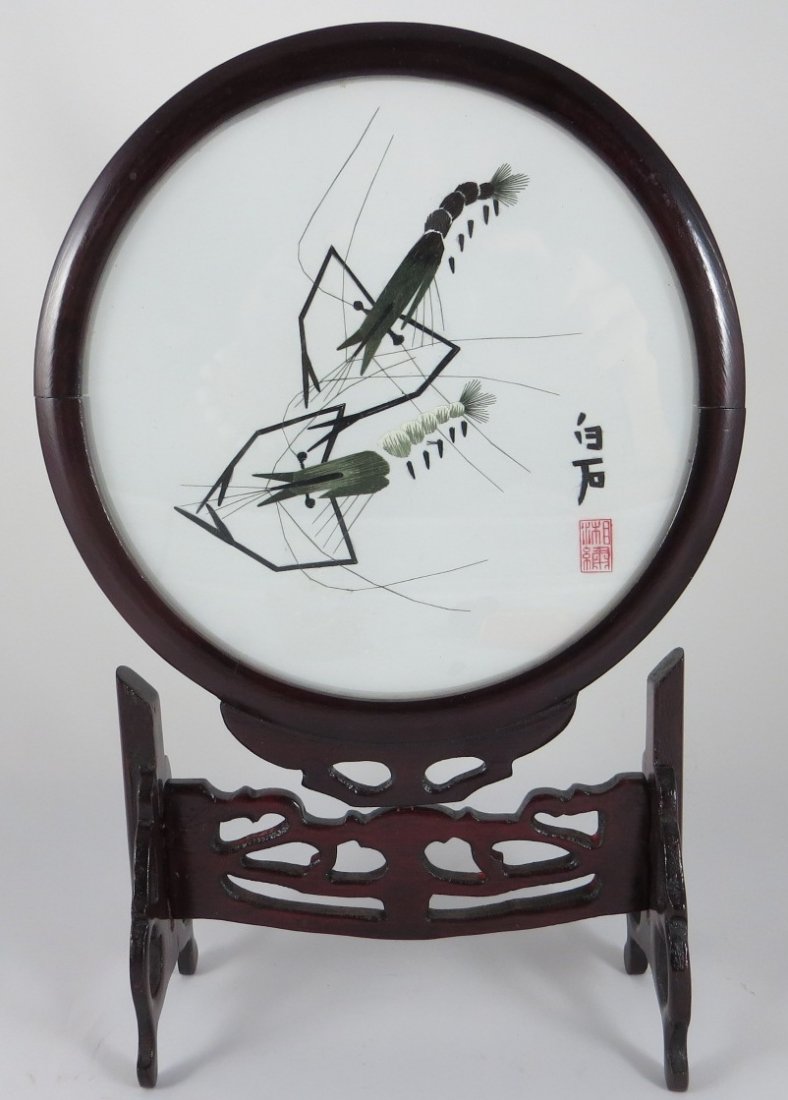 Chinese Silk Embroidery Tablescreen: Shrimp