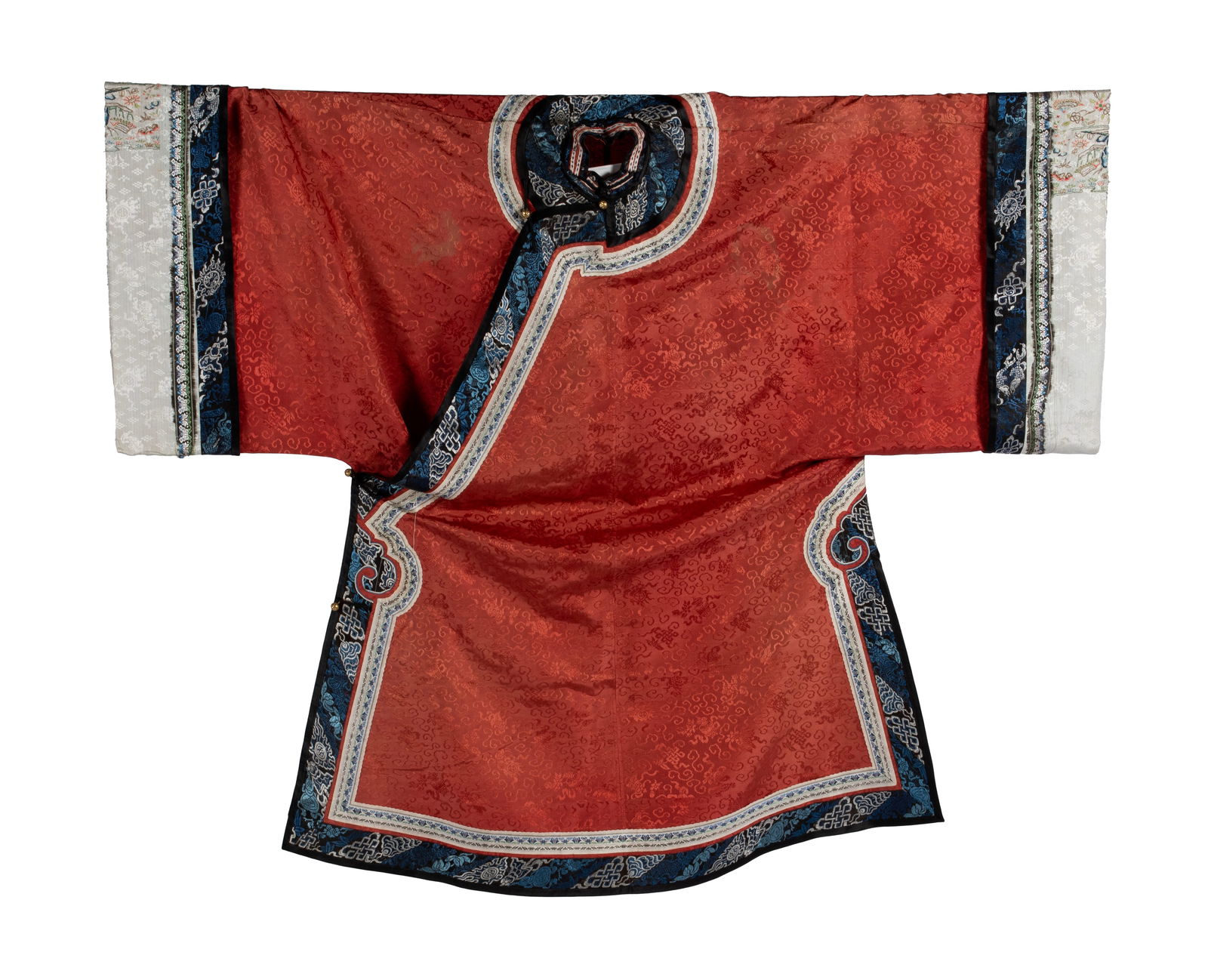 A Large Chinese Rotyal Red Silk Embroidered Robe