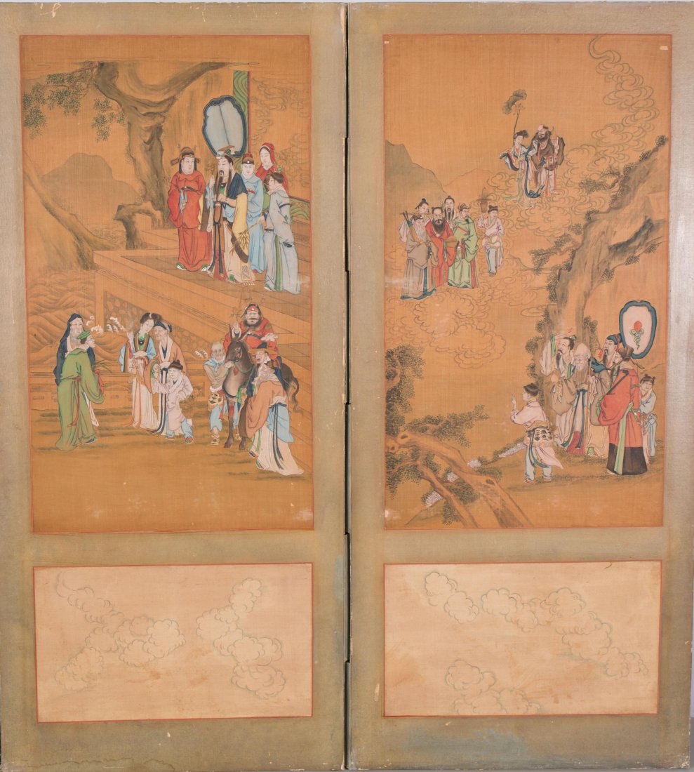 CHINESE SILK PAINTING SCREEN