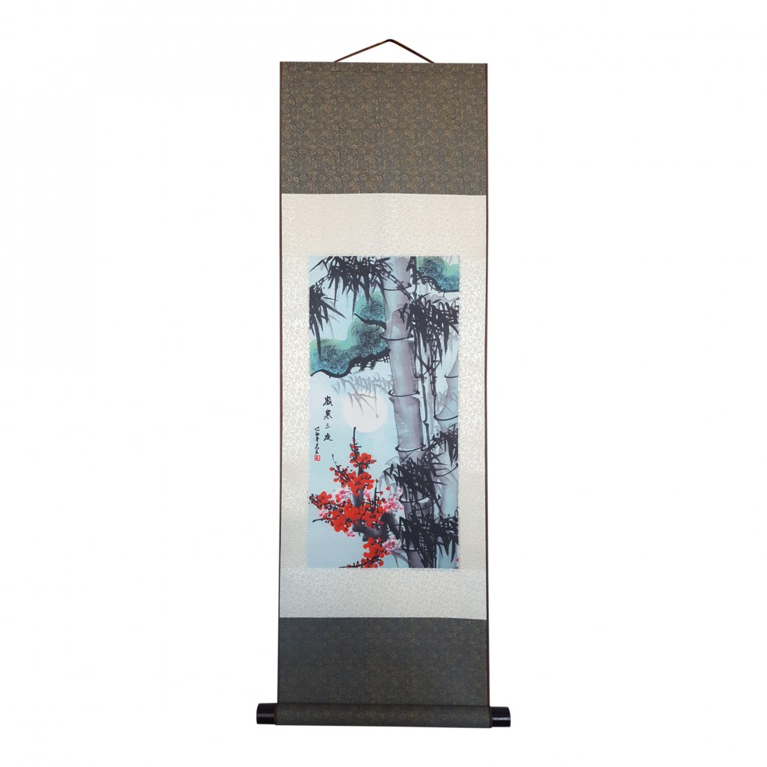 Chinese Silk Scroll, Bamboo and Flowers
