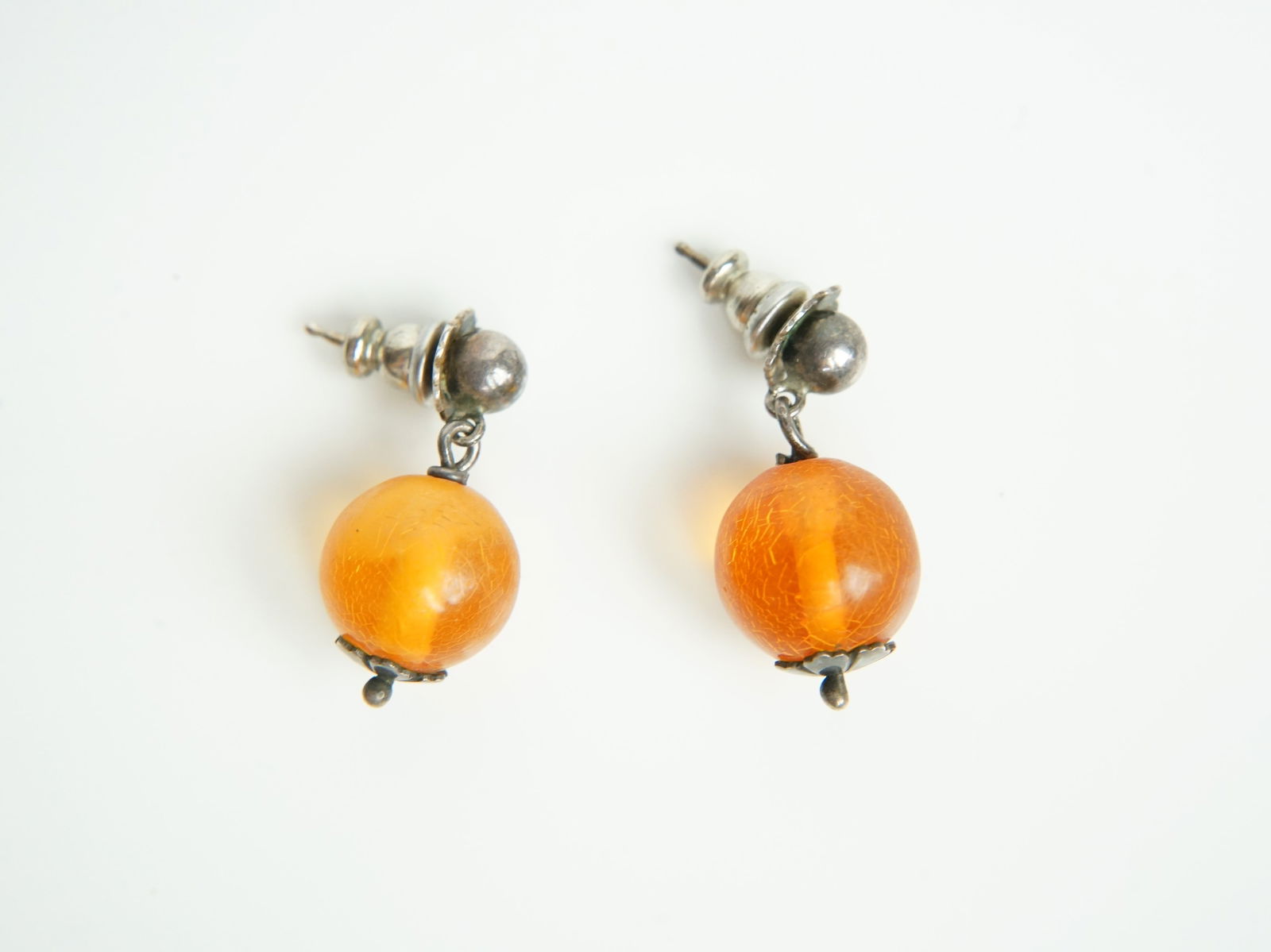 Chinese Silver and Amber Earrings