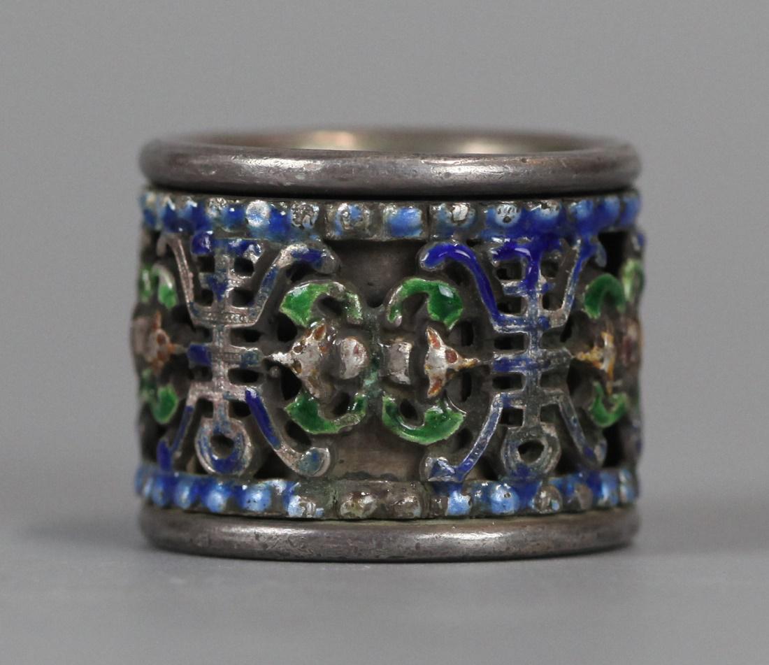 Chinese silver archer's ring w/ enamel