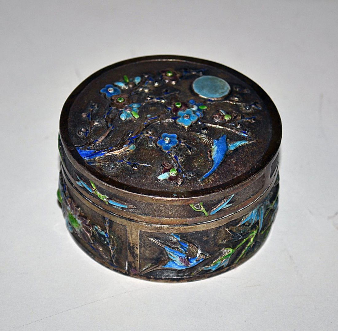 Chinese Silver Enameled Circular Box