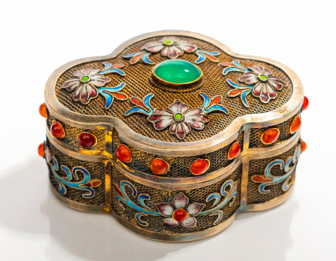 Chinese Silver, Enameled Covered Round Shape Box