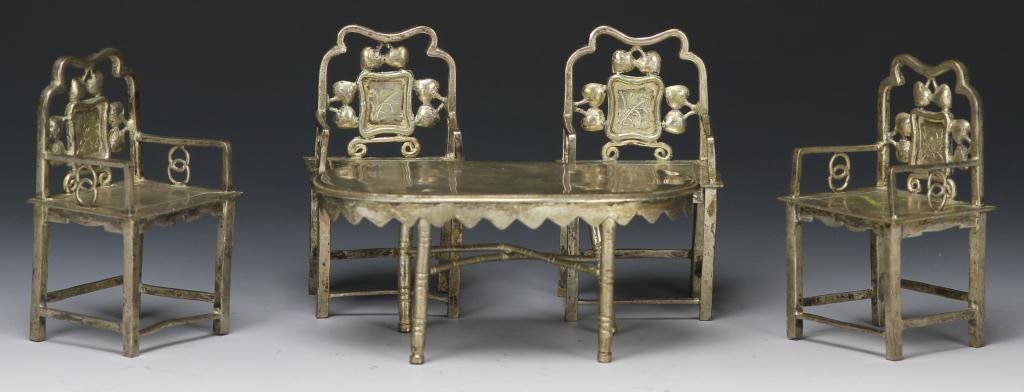 Chinese Silver Mini Items: Chairs and Table