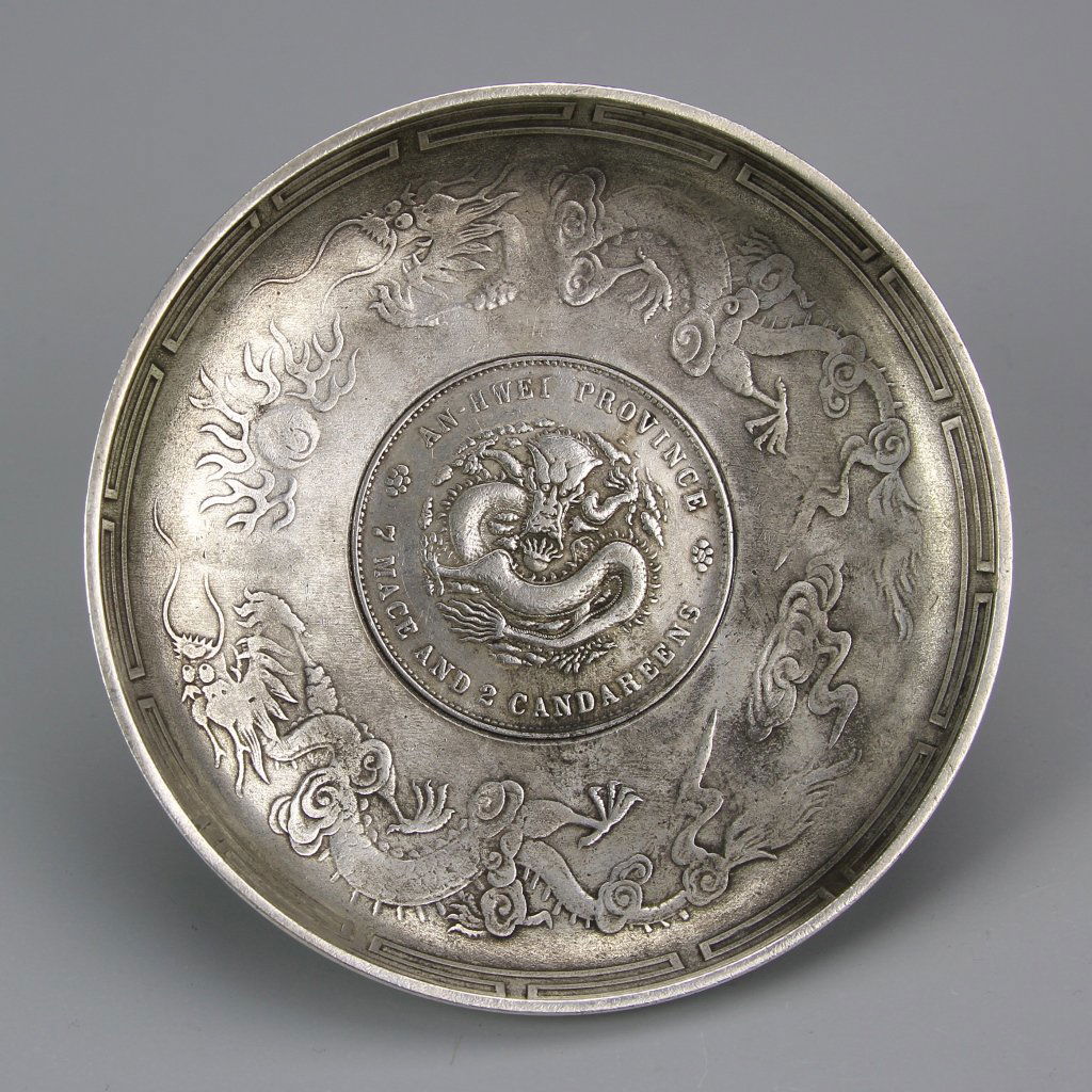 A WUCAI 'DRAGON AND PHOENIX' PORCELAIN DISH, LATE QING DYNASTYMar 11, 2026Solid white copper plate with gilded silver depicting the Four Divine Beasts and the Eight Trigrams.6 days LeftAn Exquisite Silver Character and Story Pattern Plate1 day LeftA fine Chinese silver bowl with relief dragon design on reticulated wooden stand, Tai Chang LongMar 18, 2026An Exquisite Silver the Twelve Chinese Zodiac Signs Pattern PlateMar 14, 2026Wang Hing: Chinese Circa 1900 Repousse Silver BowlMar 15, 2026A silver Buddha pattern eight treasure plate of Tibetan Buddhism in the Qing Dynasty2 days LeftA fine silver-gilt Persian appreciation plateMar 22, 2026Peruvian Silver Repousse Charger4 hrs LeftIng Wu; Chinese 1900 Hong Kong Silver Dragon BowlMar 15, 2026Chinese Copper Over Lead Bowl With Dragon Motif2 days LeftContinental silver footed dish. Elaborate repousse decoration of peasants in a bucolic landscape3 days LeftAn Exquisite Gilt Bronze Dragon Phoenix Bats and Peach Pattern PlateMar 11, 2026A Exquisite Doucai Dragon and Phoenix Pattern PlateMar 21, 2026Woshing; Chinese Incised Repousse Silver BowlMar 15, 2026Song Dynasty Ru ware celadon-glazed plate with gilt inscription and dragon and phoenix design14 hrs Left