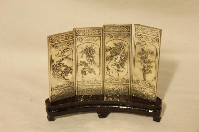 Chinese Silver Scroll Paperweight in 4 Panels