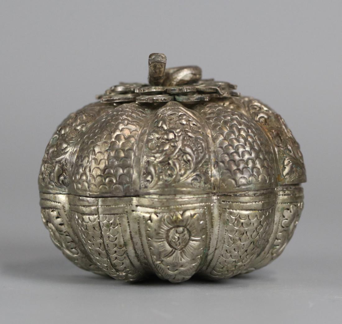 Chinese silver tone pumpkin form box