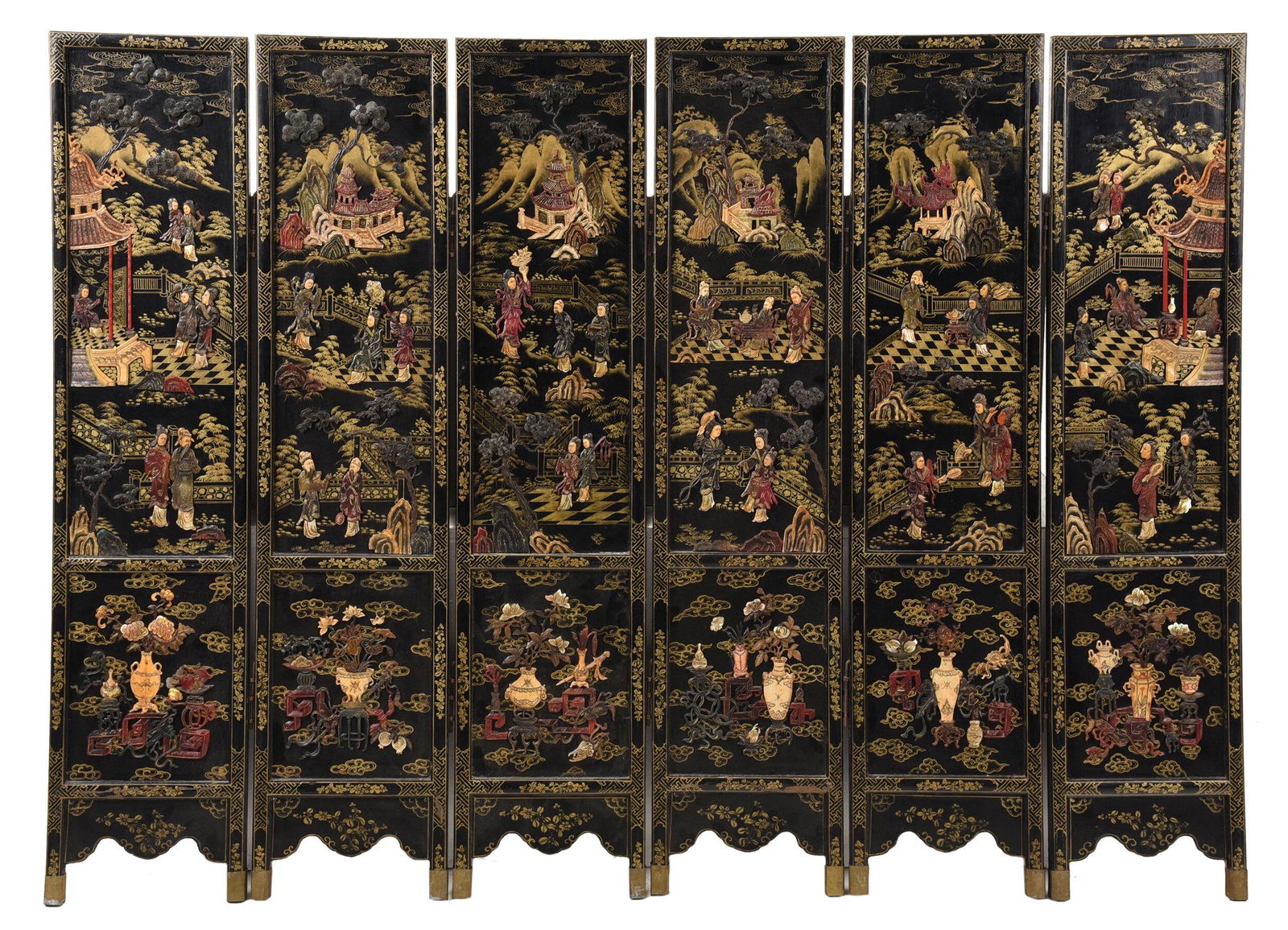 Chinese Five Panel Jade Dragon Inlay Wood ScreenApr 01, 2026A Chinese six-panel black lacquer hardstone-inlaid screen, 18th century5 days LeftA Chinese Eight-Panel Coromandel Screen, Qing Dynasty 清乾隆乙未Mar 27, 2026A Chinese Eight-Panel 'Figural' Coromandel Floor Screen, 18th Century 清中期Mar 27, 2026A Chinese four-panel black lacquer hardstone-inlaid screen, early 19th century5 days LeftEight-Panel Chinese Coromandel Lacquer Screen with Carved Wood and Painted Scenes1 day LeftChinese Black Lacquer Coromandel Floor ScreenMar 24, 2026Chinese Export Red Lacquer and Gilt Six-Panel Screen4 days LeftDutch Chinoiserie Painted Leather Screen4 days LeftA Chinese six-panel hardstone-inlaid tixi screen, Republic period5 days Left8 Panel Chinese Qing Era Wood & Painted Marble Screens3 days LeftDutch Chinoserie Painted Leather Screen4 days LeftChinese Four Porcelain Insert Panel Floor Screen6 days LeftInlaid 8-Panel Chinese Porcelain Table ScreenMar 24, 2026Maitland Smith 3 Panel Chinoiserie Folding Screen with Carved Details5 days LeftA Large Chinese Huanghuali/ rosewood Folding Screen with Mother-of-Pearl Inlay, 4 Panels5 days Left