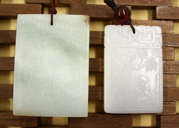 A pair of Exquisite Hetian Jade Figures Pattern Jade Plaque