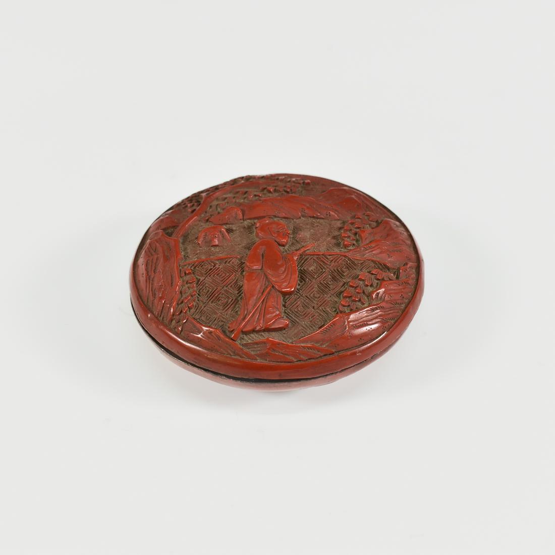 A CARVED RED LACQUER COVERED BOX WITH FIGURE NARRATIVE MOTIFSDynasty Heritage Auctions$1,200Mar 28, 2026