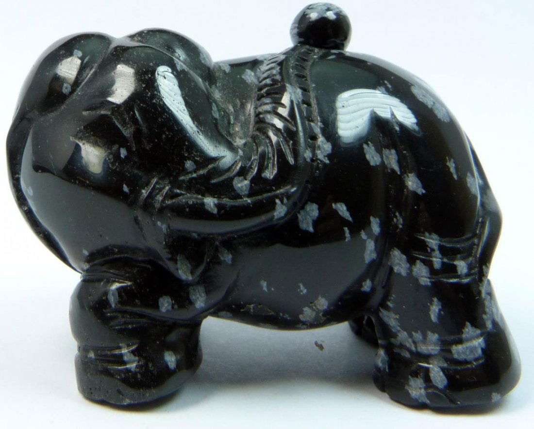 CHINESE SNOWFLAKE OBSIDIAN ELEPHANT SNUFF BOTTLE