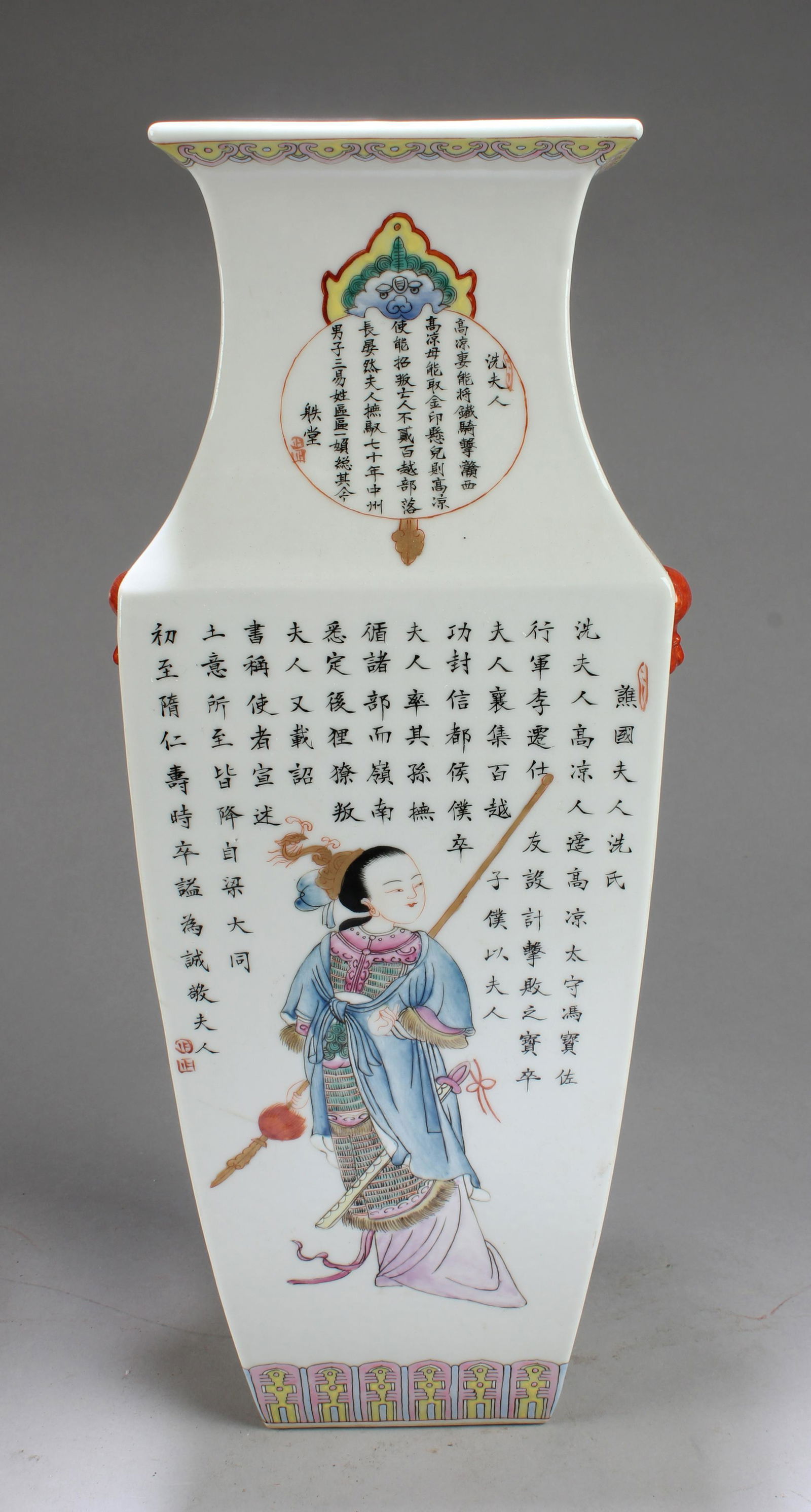 Porcelain vase. China. 19th century. Square form. Iron red decoration of historical figures. 10.5in.Tremont Auctions4.6(313)$507 days Left