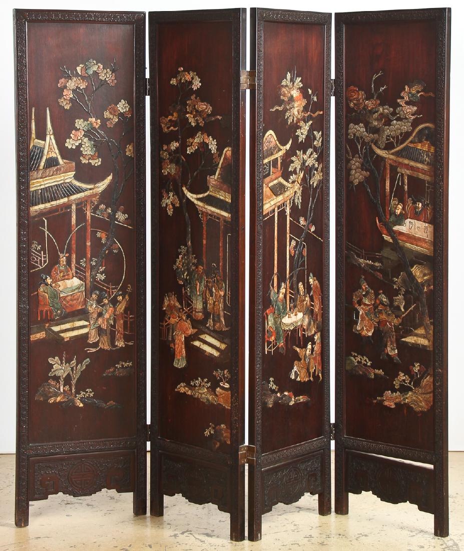 Chinese Stone Inlaid Coromandel Screen