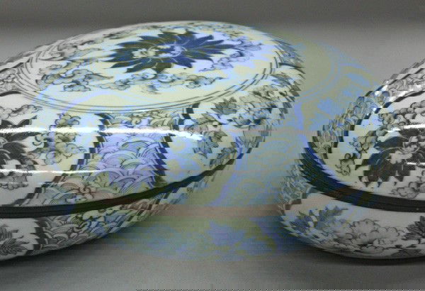 A Ming Dynasty Xuande period blue and white porcelain box with lotus and fruit design.CJ Auction$6004 hrs Left