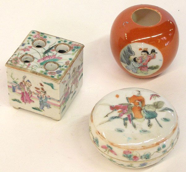 A lot of three variously decorated and shaped Chinese porcelain vases3 days LeftA lot of three Chinese Qianjiang and Famille Rose variously decorated porcelain vases3 days LeftA lot of two pairs of 20th century Chinese blue and white and Famille Rose style variously decorated3 days LeftVINTAGE "DECORATED IN HONG KONG" FAMILLE ROSE PORCELAIN LOT5 hrs Left(32) JAPANESE PORCELAIN TEA SERVICE & CHINESE FAMILLE ROSE PLATES5 hrs Left19th Century Japanese and Chinese Porcelain DishesMar 01, 2026Chinese famille rose porcelain bowl pair Qing dynasty Qianlong Mark & Period4 days LeftFive Chinese Enamel Decorated Porcelain Table ObjectsMar 12, 2026Chinese Porcelains Grouping.Mar 08, 20264 Chinese Porcelain Pieces, Hat Vase, Covered Box, DishMar 04, 2026Chinese Rose Medallion Candlesticks, 2 PairsMar 07, 2026Three Piece Chinese Famille Rose Porcelain GarnitureMar 12, 2026Three Small Japanese Porcelain Table ObjectsMar 12, 2026Chinese Blue and White Porcelain Vessels, 4Apr 14, 2026Chinese Decorative Assortment3 days LeftA Chinese Famille Rose Porcelain Round Box and LidFeb 28, 2026