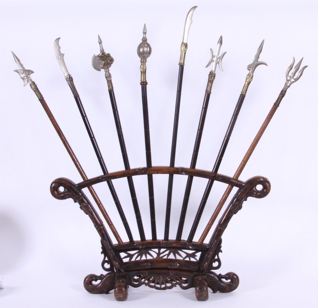 Chinese Table Top Model Pole Arms And Stand