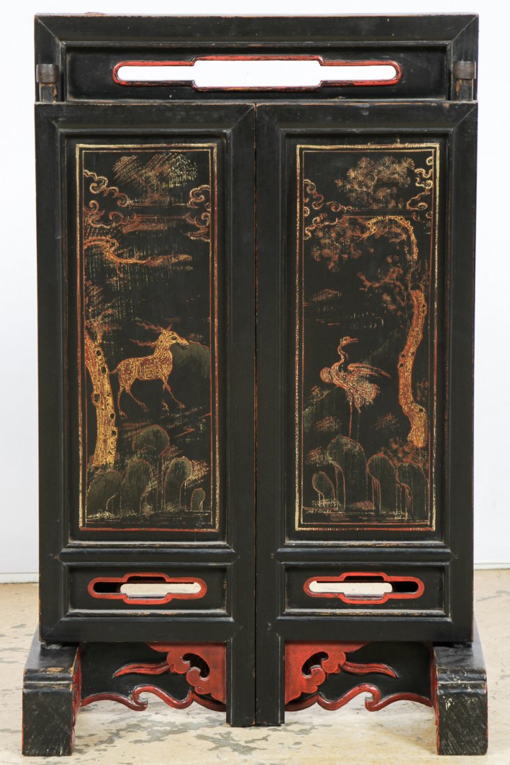 Vintage Chinese Pierced Screen Scholars CabinetA Chinese lacquered wooden table screen with jade and cloisonné, and a pair of wall panels9 hrs LeftShibayama Art, Meiji Era, Ebonized Wood, Lacquer, Two Panel Screen, Japan, 1890sApr 30, 2026An exquisite zitanwood cabinet inlaid with gems and patterns of fortune, wealth, longevity andMar 28, 2026A Chinese four-panel black lacquer polychrome screens, 17th century3 days LeftBlack Lacquered & Mother of Pearl Inlaid Oriental Two Door CabinetApr 06, 2026Chinese Carved Folding ScreenMar 31, 2026Chinese Mother of Pearl Inlaid Lacquer Screen7 days LeftGEORGIAN STYLE BLACK LACQUER CHINOISERIE CABINET ON PLINTH BASE3 days LeftChinese Black Lacquer & Hardstone Panels 2pcApr 02, 2026Chinese Stone Mounted Lacquer 4-Panel Screen7 days LeftRosewood frame lacquerware inlaid with multiple treasures screen.1 day Left96" Tall Vintage Oriental Lacquer ScreenApr 15, 2026Zitan Wood Inlaid Shell Four PanelsApr 02, 2026Fine Guangdong Embroidery Table Screen with Mother-of-pearl Inlay Winning Promotion ImmediatelyMar 28, 2026A Queen Anne style scarlet lacquered Chinoiserie decorated cabinet on chestApr 01, 2026