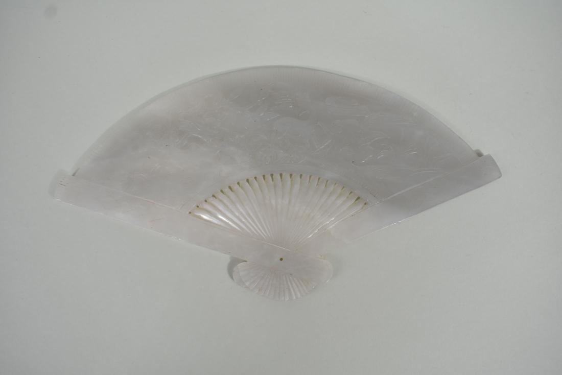 CHINESE TRANSLUCENT WHITE JADE FAN