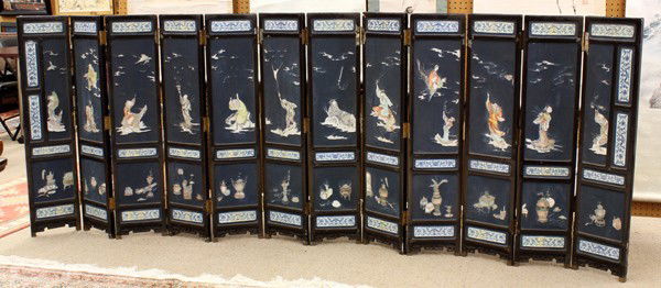 SoldA Chinese Coromandel Twelve-Panel Floor Screen HeightA Chinese Coromandel Twelve-Panel Floor Screen Height 108 x width of each panel 20 inches. Estimate $4,000-6,000See Sold Price