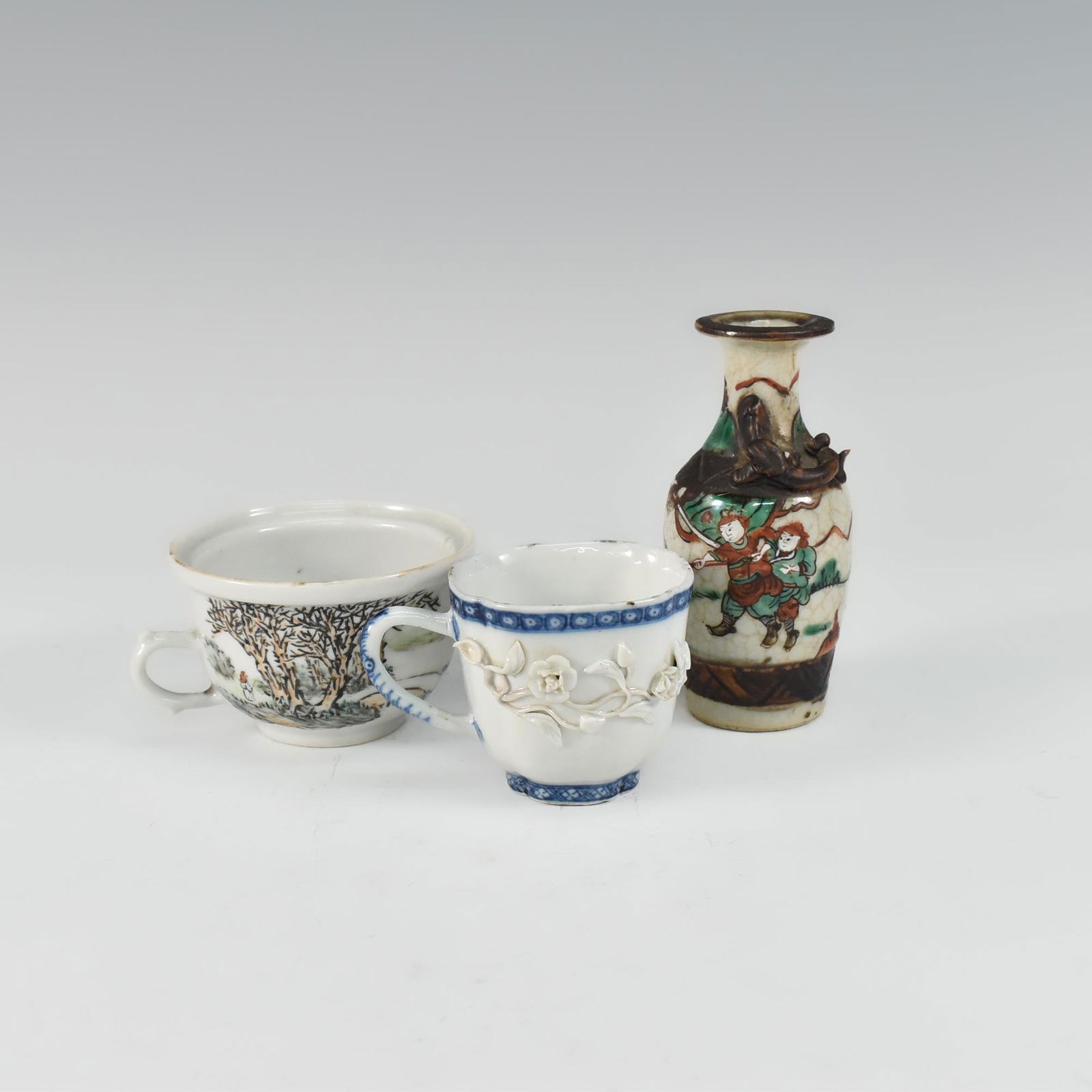 CHINESE TWO CUPS & SMALL VASE